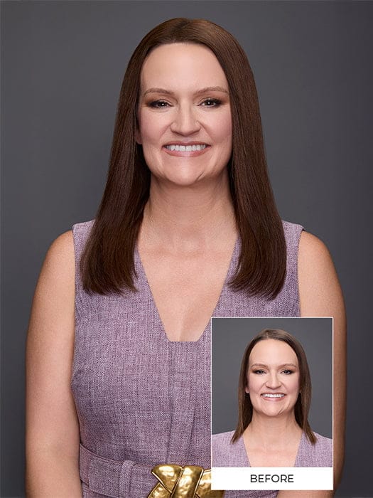 - Four 1 ⅛” clips - offer easy applications and help keep your topper securely in place. Clips can be removed for wig tape or bonded application.